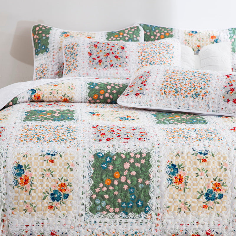 This floral quilt set blends effortlessly with both modern and classic interiors, adding elegance and comfort to your home.